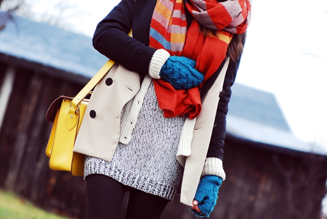 The scarf and the satchel are magical additions of color. x