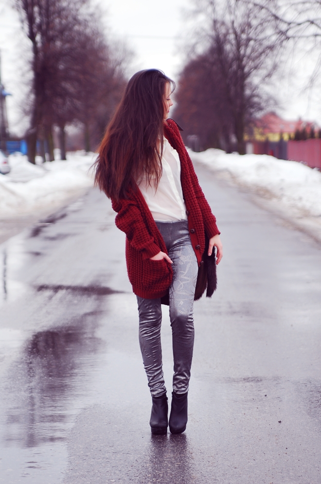 świetny zestaw, dobrze "złagodziłaś" odważne, błyszczące legginsy tym swetrem. Wielki plus ! :)