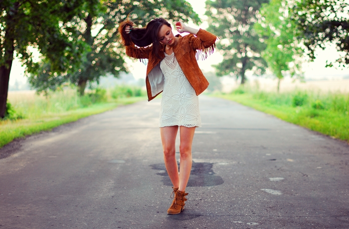 ReplyDeleteZamsz w karmelowym odcieniu i biel w ażurowym wydaniu razem wyglądają świetnie! Frędzle kurtki wprowadzają indiańsko-boho klimat dodając rumieńcy letniemu lookowi! Świetny look!