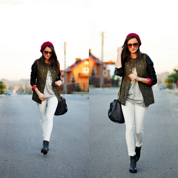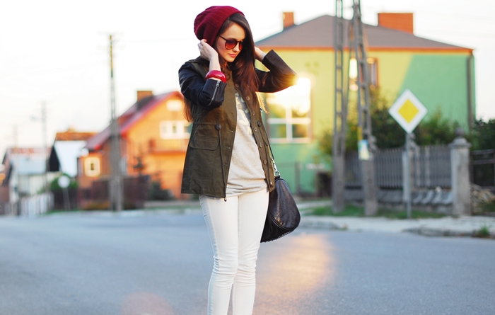 ReplyDeleteAle Ty jesteś śliczna! I zestaw, baaardzo przypadł mi do gustu! Nie sądzilam, że polączenie khaki z białymi spodniami będzie tak dobre, naprawdę świetna robota! :) obserwuję i zapraszam www.personaldress.blogspot.com