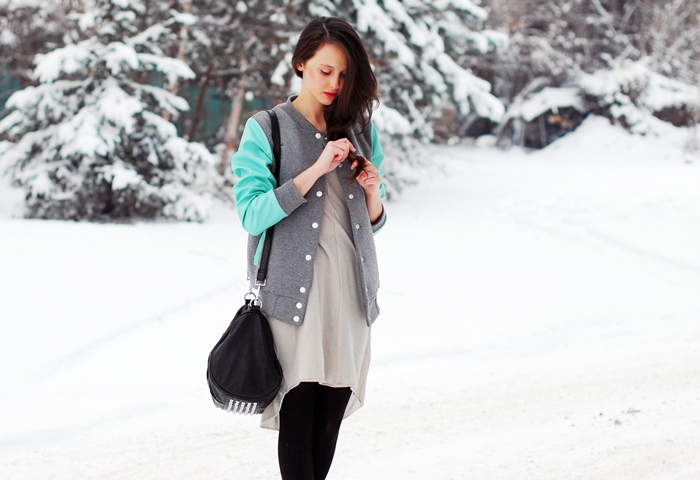 Świetny outfit! Uwielbiam takie warstwowe zestawy z przewagą szarości. I ten miętowy akcent bardzo fajnie się prezentuje :)