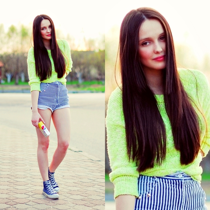 Świetne szorty i bardzo ładny neonowy sweterek - całość GENIALNA :)