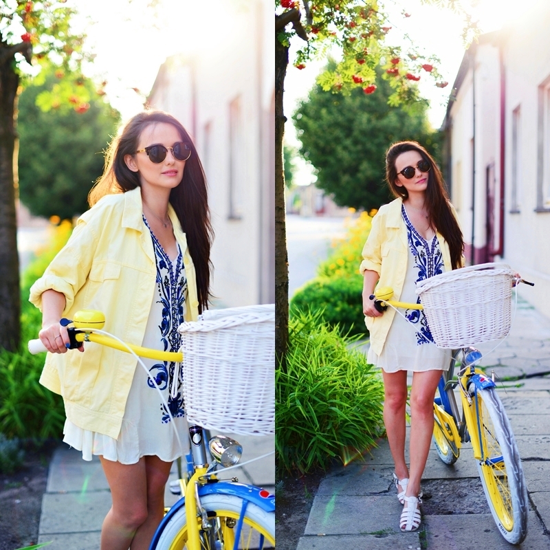 Ci, którzy śledzą moje profile na Instagramie i Facebooku z pewnością widzieli już mój nowy środek lokomocji. Ten unikalny rower został zaprojektowany specjalnie na potrzeby nowej akcji Pepsi Light & Rossmann. Jak już wiecie, zostałam zaproszona do wzięcia udziału w tym orzeźwiającym projekcie, a moim zadaniem było stworzenie letnich zestawów nadających się na rowerową randkę. Zazwyczaj wybierając się na przejażdżkę rowerem, wybieram szorty i luźny T-shirt, ale tym razem zdecydowałam się na sukienkę. Aby nadać stylizacji nieco casualowego charakteru, na wierzch narzuciłam jeansową kurtkę wyszperaną w second handzie za - uwaga - 59 groszy! Zazwyczaj w moich stylizacjach królują stonowane kolory, ale muszę przyznać, że ta cytrynowa kurtka bardzo przypadła mi do gustu. Co więcej, kolorem nawiązuje do Pepsi Light Lemon, więc wszystko się zgadza ;-) Więcej moich stylizacji znajdziecie na stronie lekkastronaorzezwienia.pl. Są tam też informację, co zrobić, by wziąć udział w konkursie i wygrać jeden z unikalnych rowerów Pepsi Light. Powodzenia!